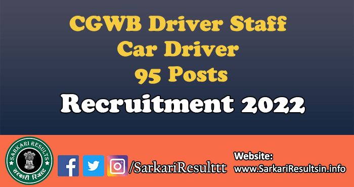 Registration are starting from January 13, 2022 and last date for the registration is February 27, 2022. There are 95 Vacancy for the CGWB Driver Staff Car Driver Recruitment 2022. CGWB Driver Staff Car Driver Pay Scale is Rs 40000 (Base). Candidates can get selection through Written Exam. CGWB Recruitment Job location is in All India.
