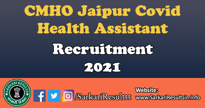 Registration are starting from July 11, 2021 and last date for the registration is July 15, 2021. There are 606 Vacancy for the CMHO Jaipur Recruitment 2021. CMHO Jaipur Covid Health Assistant Pay Scale is Rs 7,900 (Base). Candidates can get selection through Written Exam/Interview. CMHO Jaipur Job location is in Jaipur.