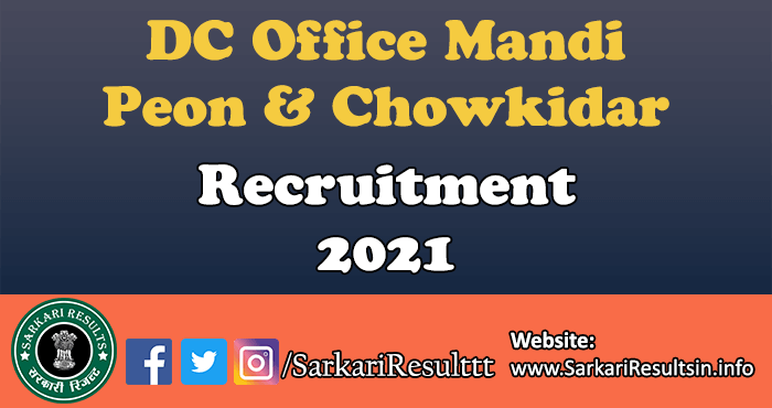 Registration are starting from July 21, 2021 and last date for the registration is August 27, 2021. There are 25 Vacancy for the DC Office Mandi Recruitment 2021. DC Office Mandi Peon, Chowkidar Pay Scale is Rs 9,000 (Base). Candidates can get selection through Interview. DC Office Recruitment Job location is in Mandi (Himachal Pradesh).