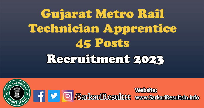 Short Information about Job: Gujarat Metro Rail Online Registration Form for the Post of Technician Apprentice Recruitment 2023 has been announced by Gujarat Metro Rail Corporation Limited Recruitment 2023. Interested Candidates for the Gujarat Metro Rail Recruitment can read the Notification Before the Registration Online.