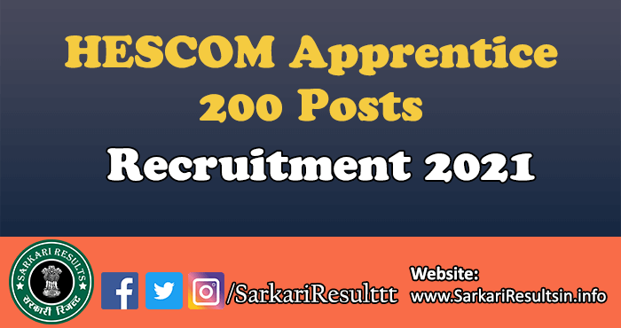 Registration are starting from September 27, 2021 and last date for the registration is October 20, 2021. There are 200 Vacancy for the HESCOM Apprentice Recruitment 2021. Candidates can get selection through Shortlisting and Document Verification.
