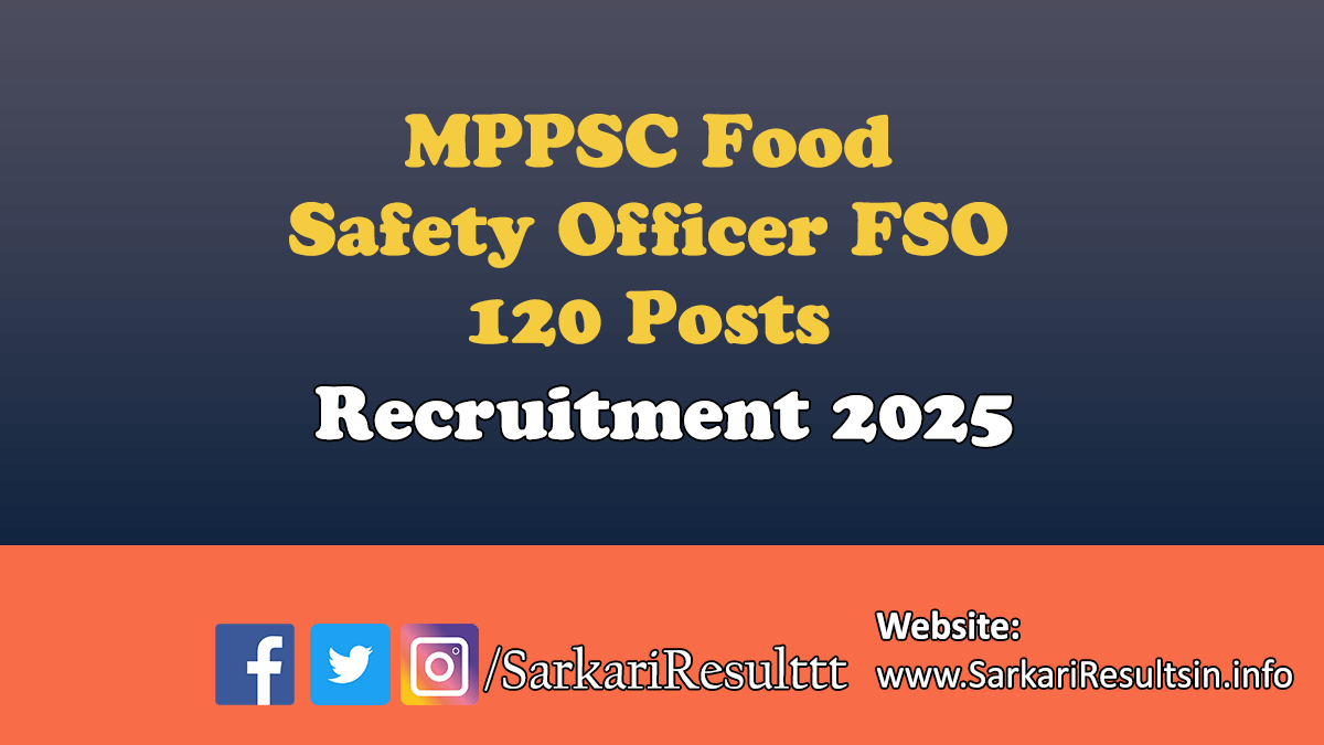 According to the Sarkari Results info updates, Registration are starting from March 27, 2025 and last date for the registration is April 27, 2025. There are 120 Vacancy for the MPPSC Food Safety Officer FSO Recruitment 2025. Candidates can get selection through Written Exam. MPPSC Food Safety Officer FSO Recruitment Job location is in All India.