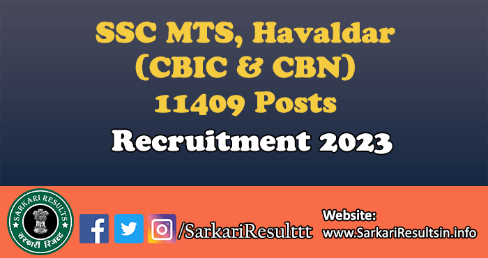 Registration are starting from January 18, 2023 and last date for the registration is February 17, 2023. There are 12523 Vacancy for the SSC MTS Recruitment 2023. Candidates can get selection through Written Exam. SSC MTS, Havaldar Recruitment Job location is in All India.