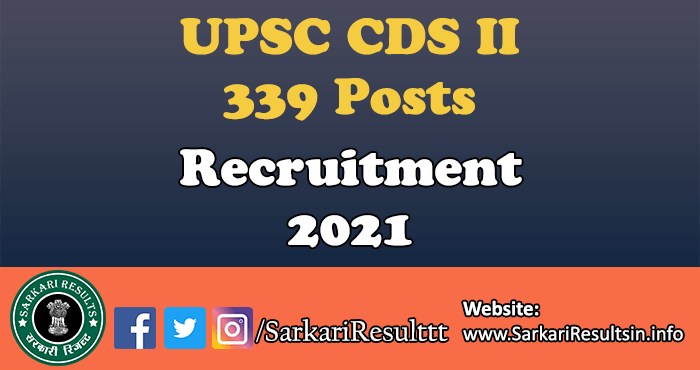 Registration are starting from August 04, 2021 and last date for the registration is August 24, 2021. There are 339 Vacancy for the UPSC CDS II Recruitment 2021. Candidates can get selection through Written Exam/ Interview. UPSC CDS II Recruitment Job location is in All India.